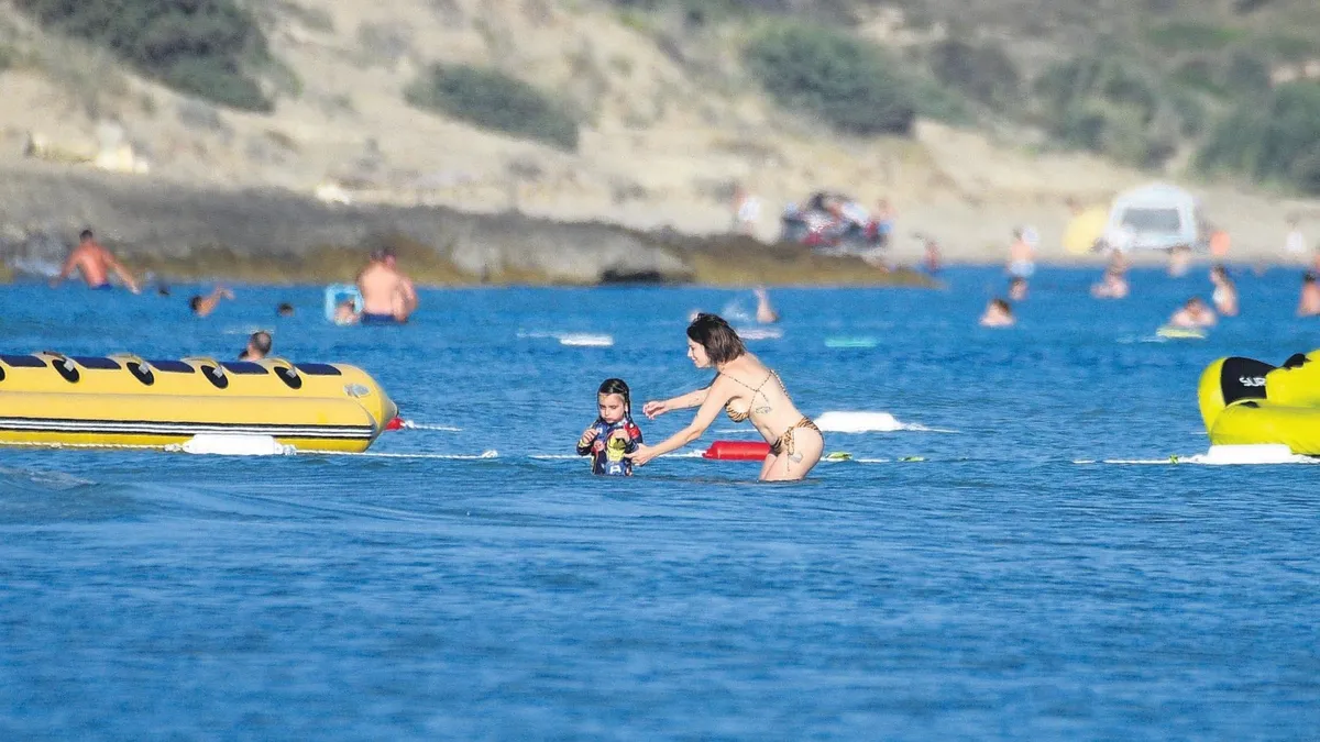 Ünlü oyuncu Hazal Kaya, oğlu Fikret Ali ve kızı Leyla Süreyya ile Çeşme’de keyif çattı. Oğlu paniğe kapılınca onu kucağına aldı.