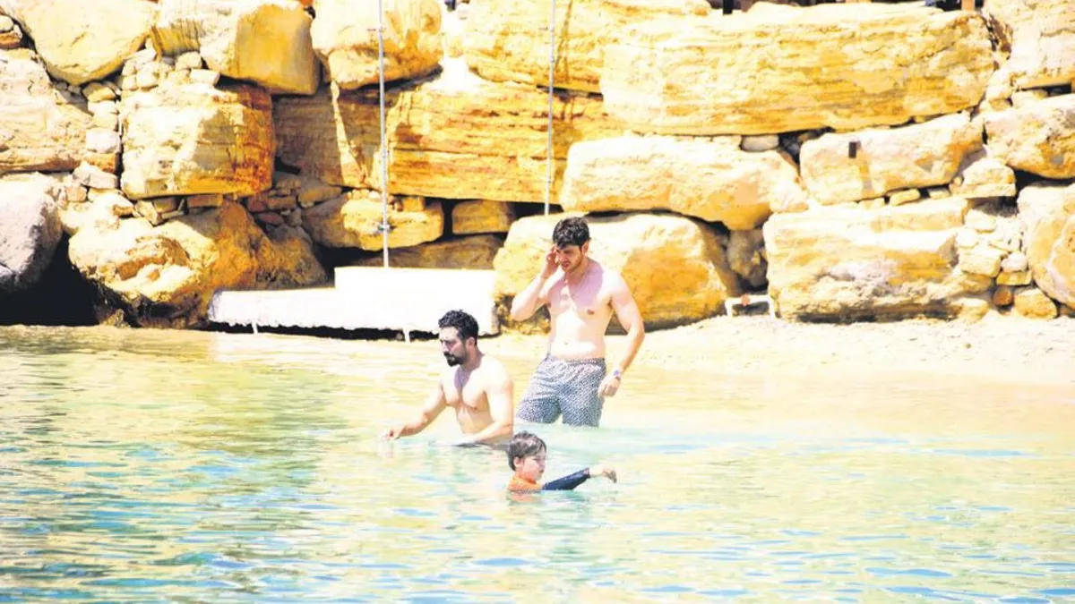 Kuruluş Osman dizisinin başrol oyuncularından Emre Bey ile meslektaşı Emre Bulut, soluğu Çeşme'de aldı