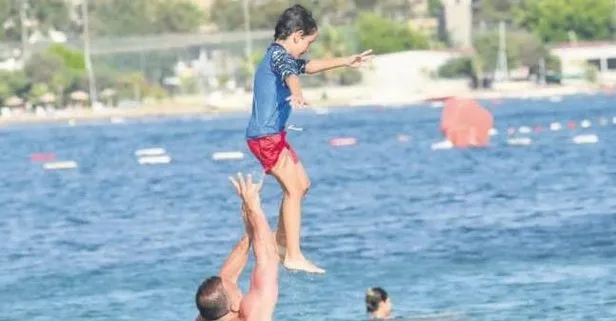 Zeynep Beşerler, oğlu Kerem ile Bodrum tatiline devam ediyor. Bir arkadaşları Kerem'i deniz içerisinde kucaklayıp fırlatmasını şaşkınlıkla izleyen Zeynep Beşerler, işte böyle görüntülendi. (Evren ABDULLAHOĞLU)