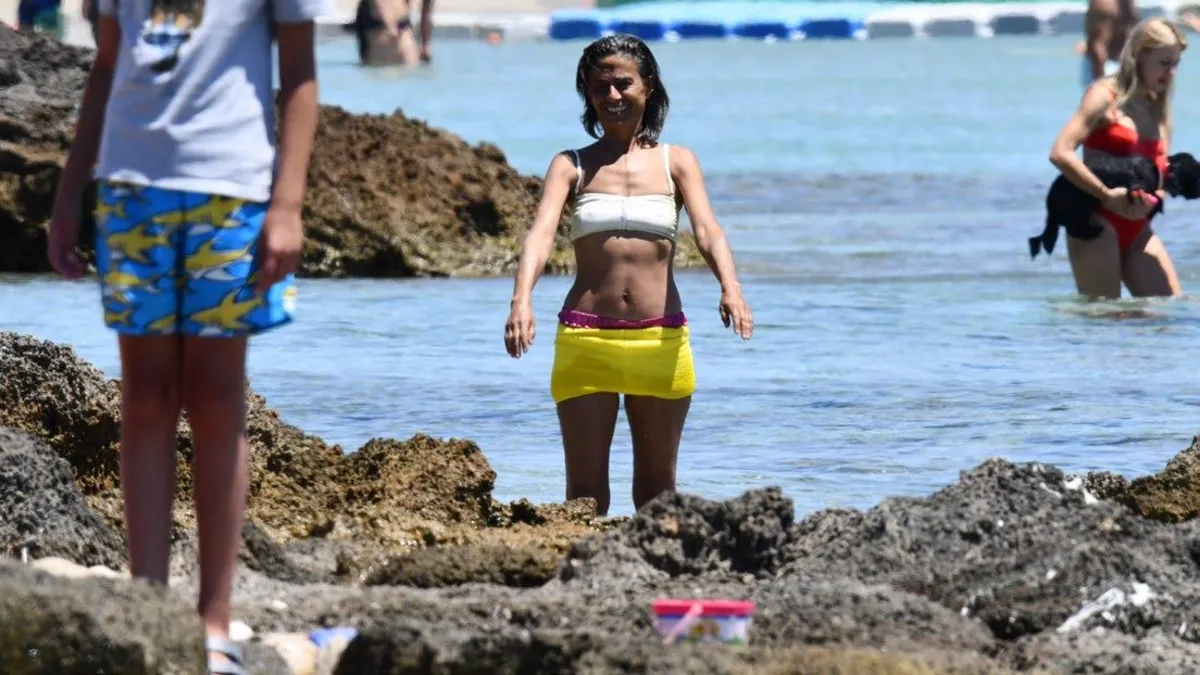 Çeşme'de bir beache giden ve renkli bikinisiyle görüntülenen Yıldız Tilbe, denize girip yüzmek yerine, kıyıda yürümeyi tercih etti. Bu sırada kendisini çeken magazin muhabirlerini fark eden sanatçı, onlara gülümseyerek el salladı. Herkes serin suların keyfini çıkarıp yüzerken, o kıyıda bulduğu taş parçasını incelemeye başlayan Tilbe, bir süre sonra taşı denize atıp şezlonguna geçti. Denizle arası pek iyi olmayan ünlü sanatçı, gün boyu arkadaşlarıyla tavla oynayarak vakit geçirdi.