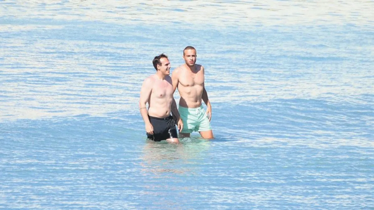 Kenan Acar, yaz tatili için de Çeşme'yi tercih eden ünlüler arasındaydı. Arkadaşıyla Çiftlikköy'deki bir beache giden oyuncu, denize girerken başladığı sohbeti bir türlü bitiremedi. Komik bir mevzudan bahseden iki arkadaş, yavaş adımlarla sudan çıkarken dahi konuşmaya devam ediyordu.