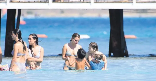 Yaz sezonunun büyük bir kısmını Çeşme'de geçiren Hazal Kaya ve Bengisu Apak, Alaçatı'daki bir beach'te çocuklarıyla birlikte denize girdi.