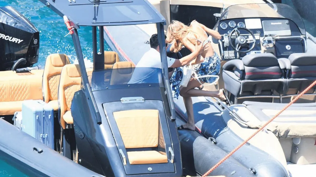 24 yaşındaki model Şevval Şahin'in tekneden tekneye geçerken hayli zorlandığı anlar görüntülendi.