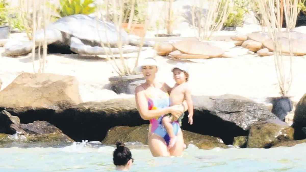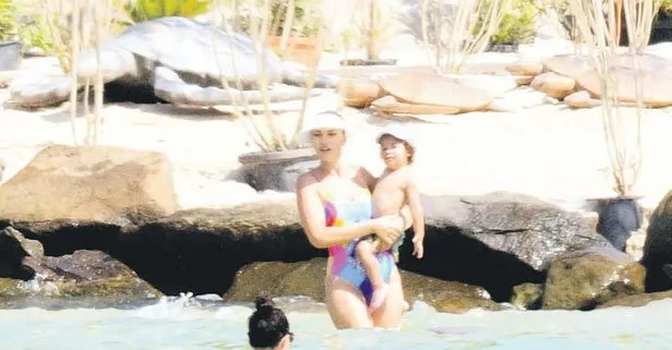 Fahriye Evcen, arkadaşlarıyla çıktığı tatilde oğlu Kerem’in peşinden hiç ayrılmadı.