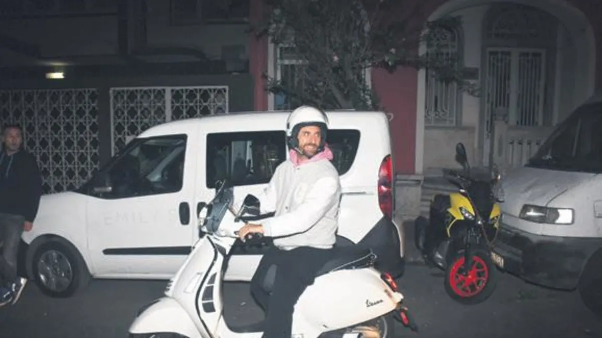 Oyuncu Fırat Çelik Cihangir'de motosikleti ile görüntülendi
