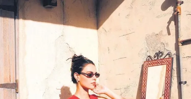 Kendall’a özgü pozlar! Oyuncu Özgü Kaya kırmızı elbisesiyle göz kamaştırdı