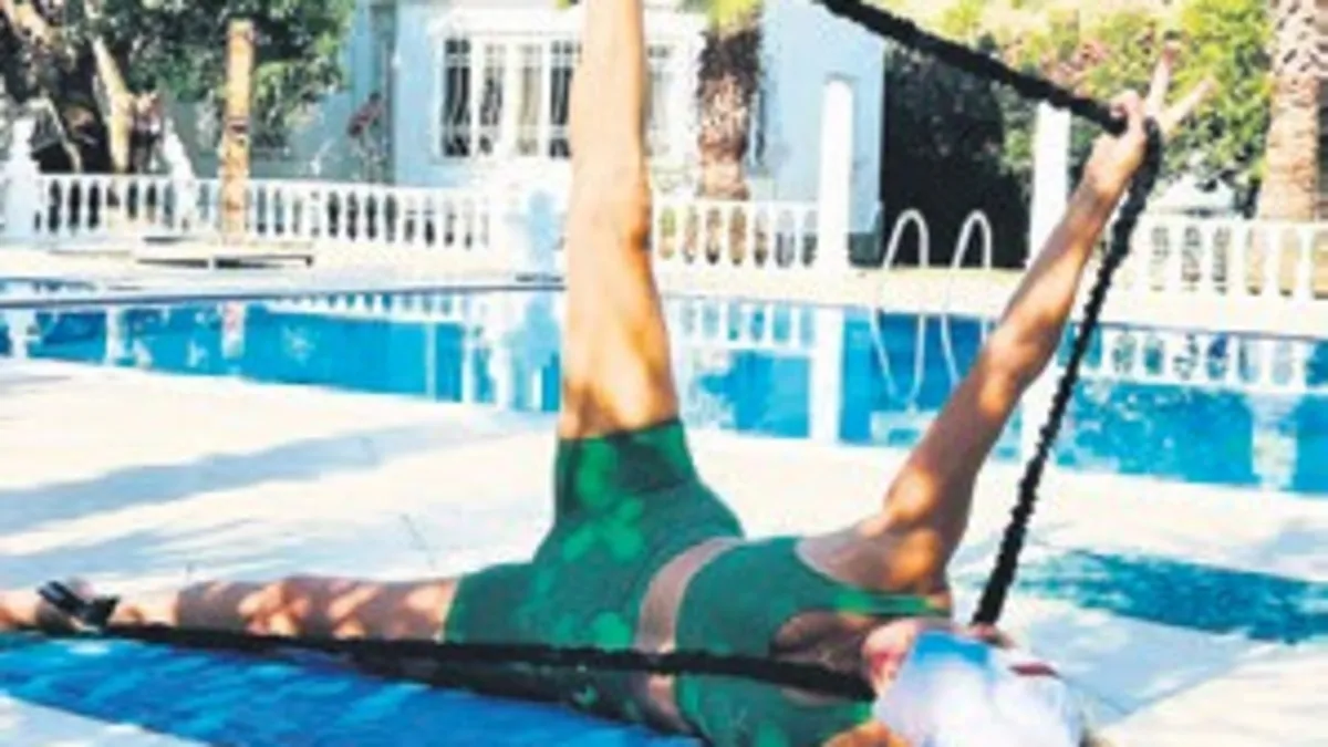 Doğayla iç içe yaşadığı çiftlikte havuz başında spor yapan Tuğba Özay, fit görüntüsüyle sağlıklı yaşam tutkusunu gözler önüne serdi.