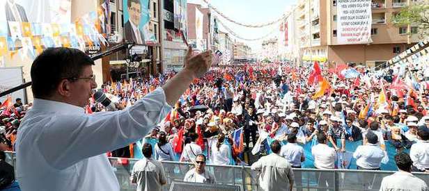 AK Parti iktidarının, Türkiye'yi kara tren çağından alıp, hızlı tren çağına taşıdığını söyleyen Davutoğlu, "Antalya'dan Konya'ya Konya'dan, Aksaray'a, Kayseri'ye hızlı tren yapıyoruz. Bu illerimiz 2019'da inşallah hızlı trenle gelip seçim kampanyası yapacağız. Onların hayal dahi edemediklerini, AK Parti yapar. İnşallah İstanbul'un fethinin 600. Yılında Türkiye, inşallah Türkiye bir cihan devleti olacak. Sünni, Alevi, Kürt, Türk hepsi AK Parti'deler. Bana Erzurum'da 'Dadaş Ahmet' dediler. Elazığ'da 'Gakkoş Ahmet' dediler. Kırşehir'e gittim 'Ahi Ahmet' dedi, Nevşehir'e geldim 'Kardeş Ahmet', İzmir'e gittim 'Efe Ahmet' dediler. Kafkaslara gittim 'Şeyh Şamil'in torunu' dediler. Biz bütün bu toprakları dolaşıyoruz. Bize bir emanet verdiniz, biz bu emanetinize zarar getirdik mi? O zaman yeniden emanetinizi istiyoruz. Bu topraklara hizmet, bizim için en büyük onurdur" diye konuştu.