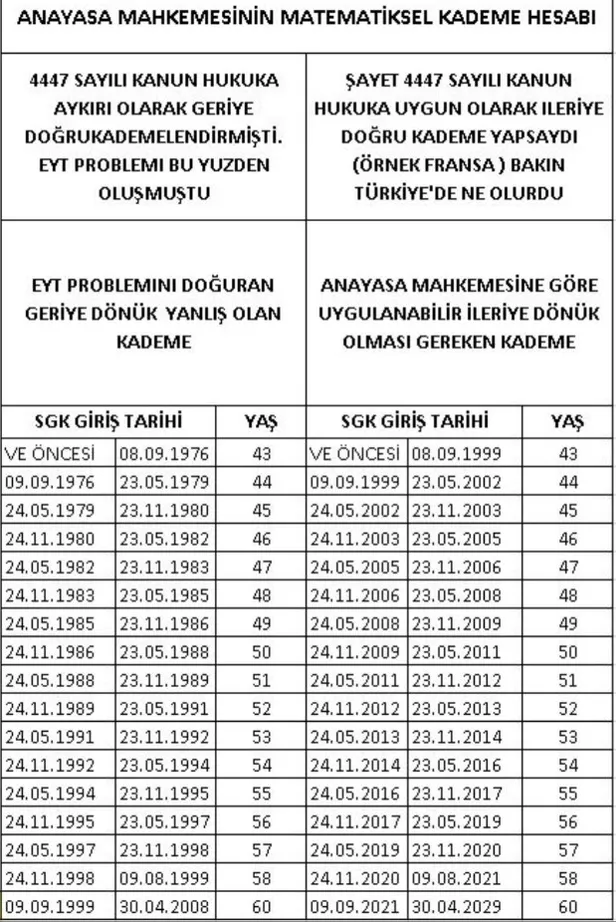 İlk işe giriş tarihi 9 Eylül 1999 ve sonrası olanlar için kademeli emeklilik uygulaması tartışmalara yol açtı. Kademeli emeklilik, işe giriş tarihine göre farklı emeklilik yaşları belirlemeyi öneriyor ve böylece herkesin EYT yasasından yararlanmasını sağlıyordu.