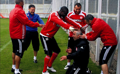 Sivasspor'da dünkü entrenman öncesinde futbolcular, Trabzonspor maçında galibiyet konusunda iddiaya girdikleri masör ve malzemecileri saha ortasında tıraş etti. Antep maçı öncesi sakatlıkları bulunan Sedat ve Sylla'nın bu maça yetiştirilmesi yoğun çaba harcandığı belirtildi. İbrahim Dağaşan, kart cezası nedeniyle bu hafta oynamayacak.
