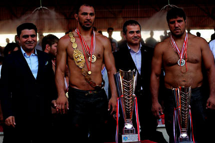 Edirne Sarayiçi Er Meydanı'nda yapılan 651. Tarihi Kırkpınar'da kürsüye çıkan isimlere madalyalarını Spor Bakanı Suat Kılıç verdi.