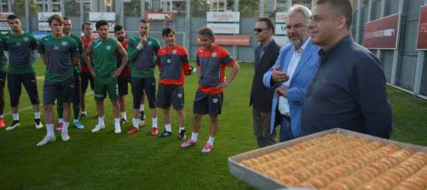 Bursa Vali Yardımcısı Ahmet Hikmet Şahin, yeşil-beyazlıların Teknik Direktör Şenol Güneş yönetiminde gerçekleştirilen antrenmanı öncesi Özlüce Tesisleri'ne gelerek, Davutoğlu'nun gönderdiği baklavaları teknik heyet ve oyunculara sundu.