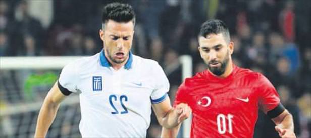 Yunanistan milli marşı çalınırken yükselen ıslık sesleri üzerine kaptan Arda Turan tribünlere dönerek, 'susun, ıslıklamayın' şeklinde el işaret yapıp duruma müdahale etti.