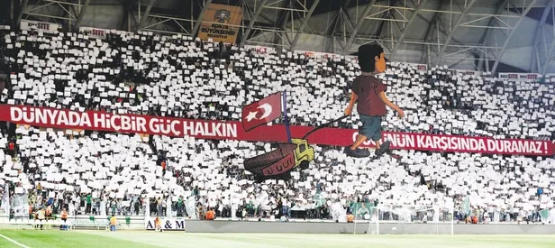 Yeşil-Beyazlı taraftarlar kuzey kale arkası tribünde üzerinde Türk Bayrağı bulunan kamyonu çeken bir çocuğun fotoğrafı ile birlikte 'Dünyada hiç bir güç halkın gücünün karşısında duramaz' ve 'Şehit Piyade Astsubay Başçavuş Ömer Halisdemir. O sizi iki kurşunla bitirdi siz onu 30 kurşunla ölümsüzleştirdiniz'' yazılı dev parkantlar açtı.