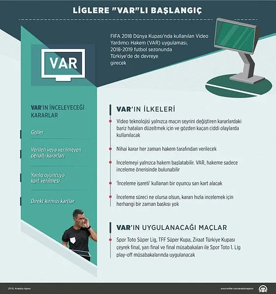 FIFA 2018 Dünya Kupası'nda kullanılan Video Yardımcı Hakem (VAR) sistemi, 2018-2019 futbol sezonunda Türkiye'de de devreye girecek.