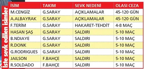 Türkiye gündemine oturan olaylı G.Saray-F.Bahçe derbisiyle ilgili cezalar bugün açıklanacak.