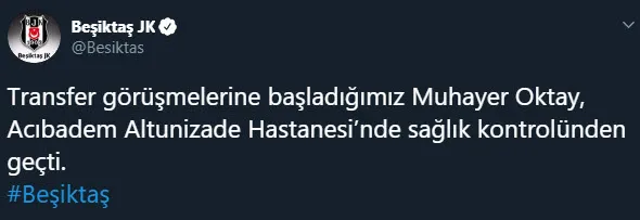 "Transfer görüşmelerine başladığımız Muhayer Oktay, Acıbadem Altunizade Hastanesi'nde sağlık kontrolünden geçti."