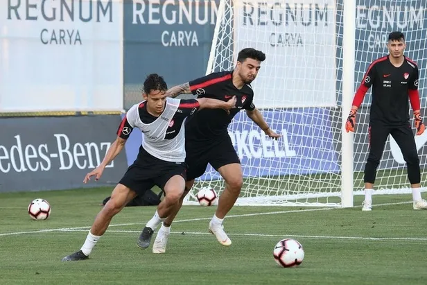 A Milli Takım Teknik Direktörü Şenol Güneş'in talimatıyla tamamı basına açılan idmanda, Merih Demiral ve Ozan Kabak dışında aday kadroya çağrılan tüm futbolcular yer aldı. Uçağı rötar yapan Merih Demiral akşam saatlerinde, Ozan Kabak ise bu gece Stuttgart kulübüyle Almanya 1. Ligi play-out maçına çıkacağı için bugün kampa katılacak.