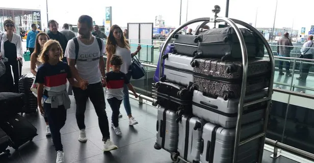 İstanbul Havalimanı'nda eşi Rocio Millan ve çocuklarıyla görüntülenen Soldado ile ailesine ait 9 bavul, 3 büyük çanta vardı.