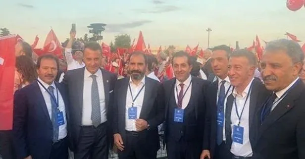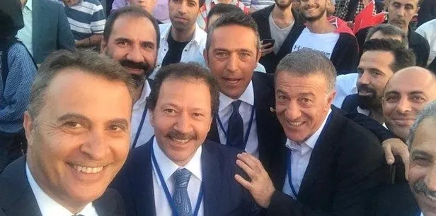 Süper Lig kulüplerinden Trabzonspor Başkanı Ahmet Ağaoğlu, Fenerbahçe Başkanı Ali Koç, Beşiktaş Başkanı Fikret Orman, Sivasspor Başkanı Mecnun Odyakmaz Ankaragücü Başkanı Mehmet Yiğiner ve Kayserispor Başkanı Erol Bedir havalimanında 15 Temmuz destanına destek verdi.