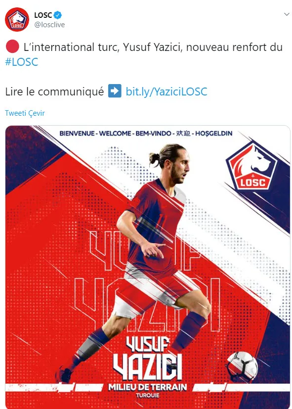 "Profesyonel futbolcu Yusuf Yazıcı'nın Losc Lille kulübüne transferi konusunda, anlaşma sağlanmıştır.