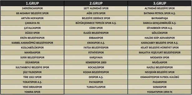 Afjet Afyonspor, Amed Sportif Faaliyetler, Bak Spor, Gümüşhanespor, Hacettepe, Hekimoğlu Trabzon, İnegölspor, Kırklarelispor, Konya Anadolu Selçukluspor, Manisa Büyükşehir Belediyespor, Pendikspor, Samsunspor, Sancaktepe Belediyespor, Sarıyer, Şanlıurfaspor, Tarsus İdmanyurdu, Yeni Çorumspor, Zonguldak Kömürspor.