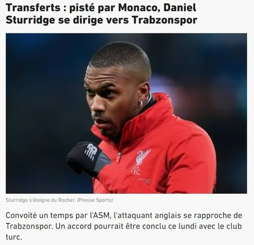 Adı bir süredir Trabzonspor ile anılan İngiliz golcü Daniel Sturridge için Fransız basınından yeni bir iddia geldi. Ortaya atılan iddiaya göre İngiliz golcü ile Trabzonspor arasındaki anlaşmanın çok yakın olduğu ifade edildi.