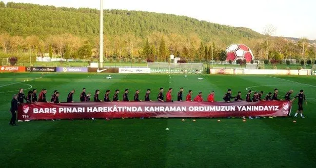 Arnavutluk maçı öncesinde son idmanını dün gerçekleştiren Milli Takım'dan Mehmetçik'e büyük destek geldi. Futbolcular dünkü antrenmana ellerinde "Barış Pınarı Harekatı'nda kahraman ordumuzun yanındayız" yazılı pankartla çıktı. Bu parkart sosyal medyada büyük alkış topladı.
