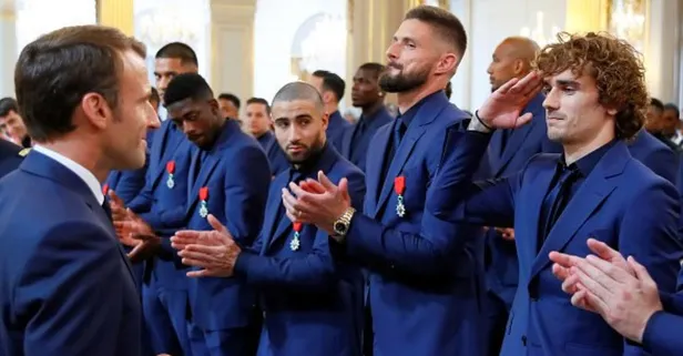 Yine Antoine Griezmann, Fransa Cumhurbaşkanı Emmanuel Macron, Dünya Kupası'nı kazanan kadroyu Elysee Sarayı'nda onur madalyası ile ödüllendirdiğinde asker selamı vermişti.