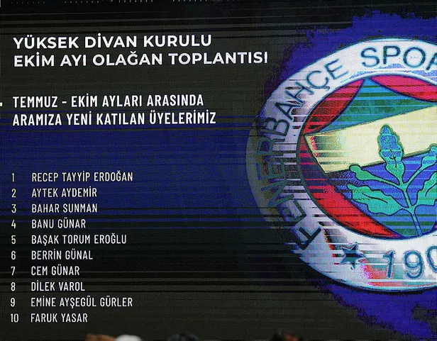 Fenerbahçe'de Yüksek Divan Kurulu ekim ayı olağan toplantısı gerçekleştiriliyor. Divan Kuruluna kongre üyeliğinde 25. yılını dolduran Başkan Recep Tayyip Erdoğan da katıldı.