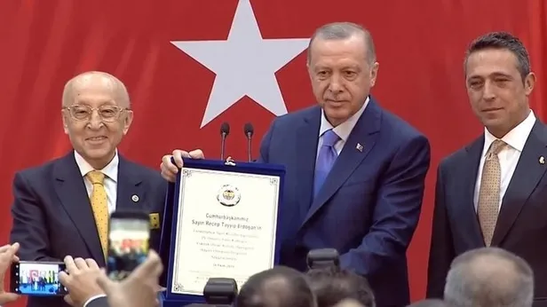 Fenerbahçe Kulübü Başkanı Ali Koç : "Sayın Cumhurbaşkanımız Recep Tayyip Erdoğan'ın asırlık çınar Fenerbahçe'nin çatısı altında bizlerle olmasının onurunu ve gururunu yaşıyoruz. Sayın Cumhurbaşkanımız, kongre üyeliğinin 25. yılını doldurdu ve yüksek divan kurulu üyesi oldu." dedi.
