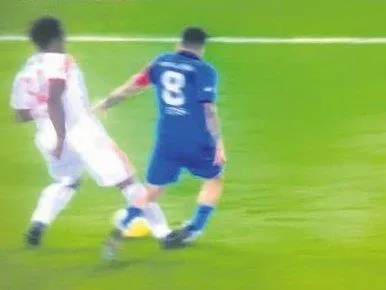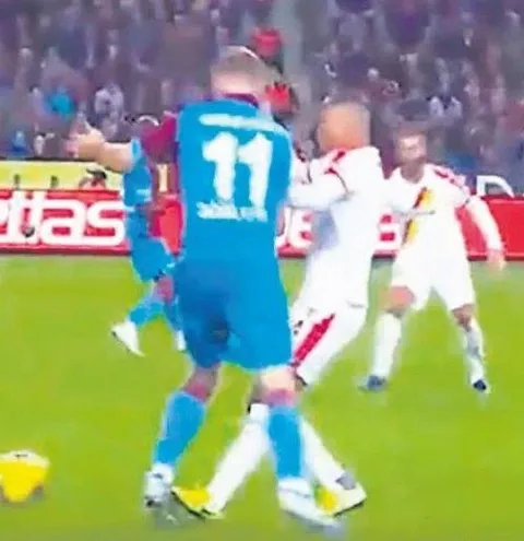 Dk 59 Titi, ceza sahası içinde Sörloth'un ayağına basıyor.