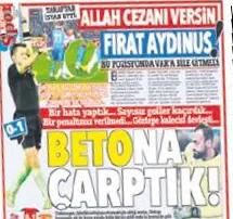 Karadeniz Gazetesi, Trabzon-Göztepe maçı için "Allah cezanı versin Fırat Aydınus" manşetini attı.