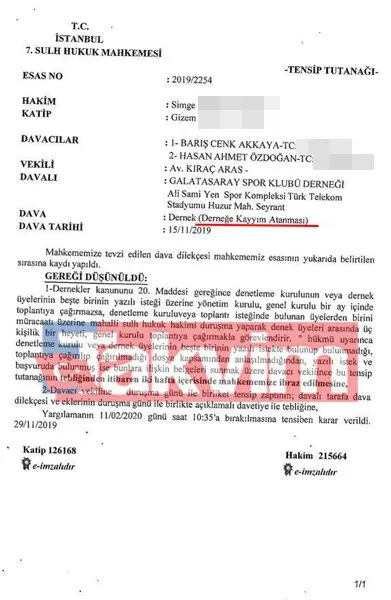 Özdoğan ise ısrarla, "Bizim böyle bir talebimiz yok" diye konuşmuştu. Dün konuyla ilgili bir belge sosyal medyaya düştü. 7. Sulh Hukuk Mahkemesi'nde açılan davanın tensip tutanağında "Derneğe Kayyum Atanması" ifadesinin yer alması dikkat çekti.
