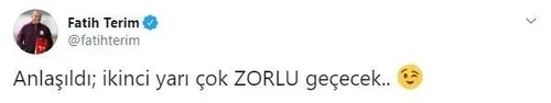 Terim'in paylaşımında "Anlaşıldı; ikinci yarı çok ZORLU geçecek" ifadeleri yer aldı.