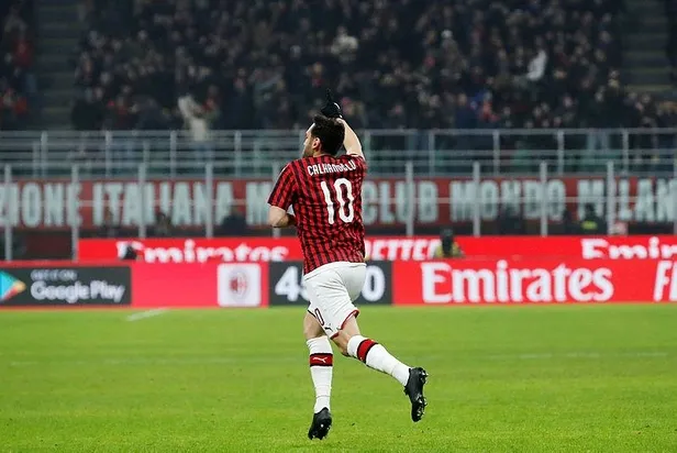 Milli futbolcu Hakan Çalhanoğlu, maçın normal süresi bitmek üzereyken attığı beraberlik golüyle takımını önce elenmekten kurtardı ardından da uzatma bölümünde üstünlük golünü atarak, karşılaşmada yıldızlaştı.