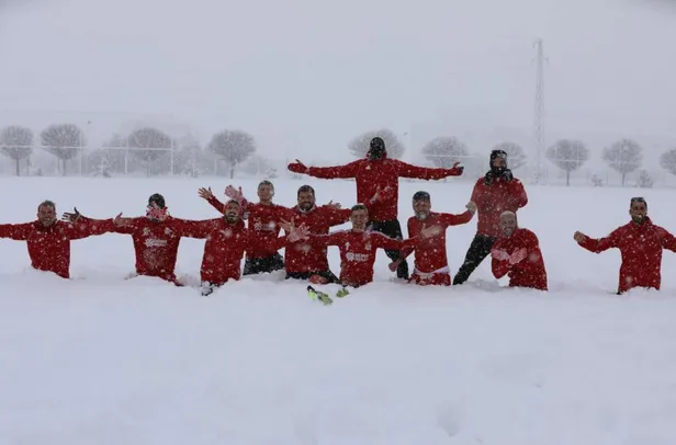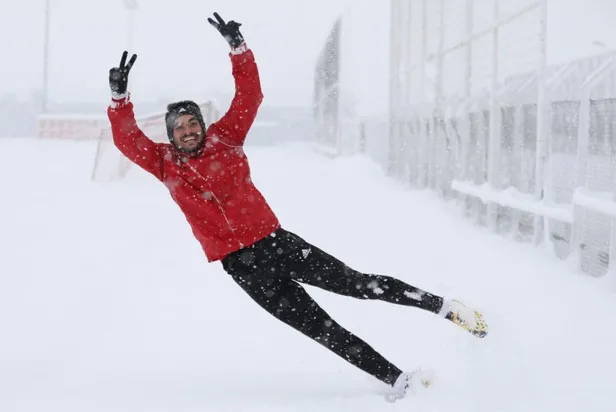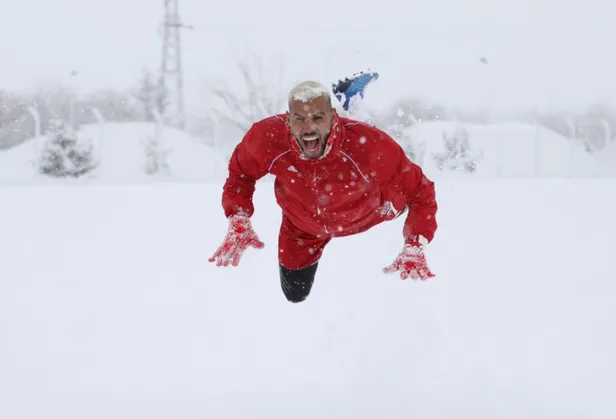 Antalyasporlu futbolcular hava şartları nedeniyle Sivas'a iniş yapamazken, Sivassporlu futbolcuların antrenmandaki kar keyfi de kameralara böyle yansıdı.