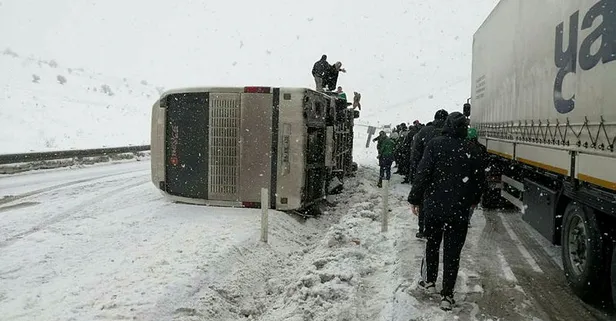 Bursaspor taraftarlarını taşıyan otobüs Erzurum'a giderken devrildi