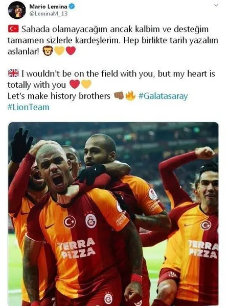 Süper Lig'in 23. haftasında ezeli rakibi Fenerbahçe'ye konuk olacak Galatasaray'da hazırlıklar tüm hızıyla sürüyor. Sarı-kırmızılılar'da sakatlığı bulunan Gabonlu oyuncu Mario Lemina'nın ise derbide forma giyip giyemeyeceği belirsizliğini koruyordu. Yıldız oyuncu sosyal medya hesabı üzerinden yaptığı açıklamayla durumuna açıklık getirdi.
