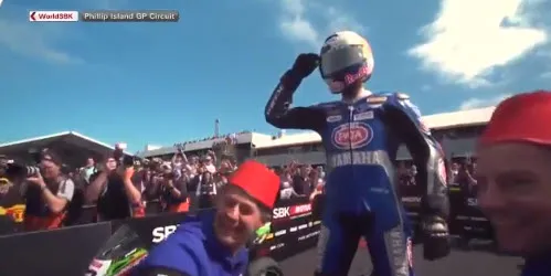 Dünya Superbike Şampiyonası’nda milli motosikletçi Toprak Razgatlıoğlu, sezonun açılış etabı Avustralya’daki ilk yarışı birinci sırada bitirdi. Toprak elde ettiği galibiyetin ardından asker selamıyla Mehmetçiğe destek verdi. Ardından podyumda şampanya patlatılması sırasında podyumdan indi.