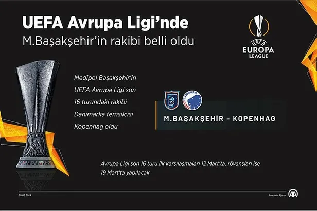 Avrupa Ligi’nde Sporting Lizbon’u eleyerek göğsümüzü kabartan Başakşehir, son 16 turunda Danimarka’nın Kopenhag takımıyla eşleşti. İlk maç 12 Mart’ta İstanbul’da.