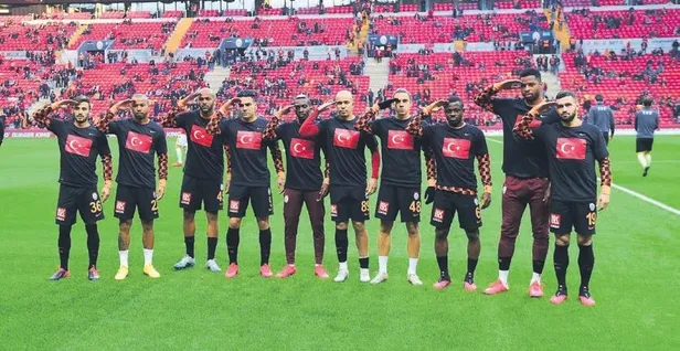 KARŞILAŞMANIN hemen başında skoru 1-0'a getiren Ryan Donk golün hemen ardından tribünün önüne doğru gitti ve asker selamı verdi. Galatasaraylı diğer futbolcular da Hollandalı yıldıza eşlik etti. Bu güzel görüntünün ardından Sarı-Kırmızılı tribünler "Şehitler ölmez" diye inledi.