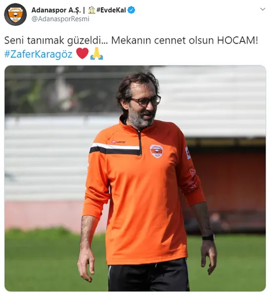 Karagöz hayatını kaybettikten sonra ise Adanaspor, "Seni tanımak güzeldi. Mekanın cennet olsun hocam" mesajı paylaşıldı.
