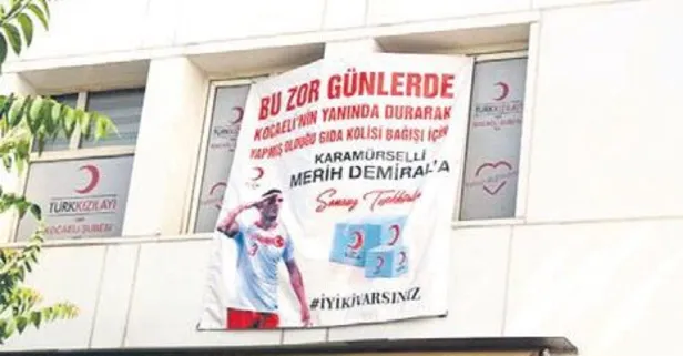 Kızılay'ayardımında bulunan Merih Demiral onurlandırıldı. Kızılay Kocaeli binasına Merih'in milli takım formasıyla verdiği asker selamı fotoğrafı ve "Bu zor günlerde Kocaeli'nin yanında durarak yapmış olduğu gıda kolisi bağışı için Karamürselli Merih Demiral'a sonsuz teşekkürler" pankartı asıldı.