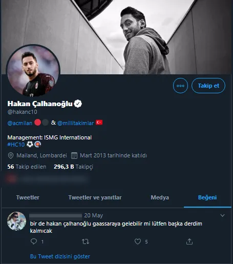 Hakan Çalhanoğlu, twitterda bir kullanıcının 'Hakan Çalhanoğlu, Galatasaray'a gelebilir mi lütfen başka derdim kalmayacak' yazılı tweetini beğendi.