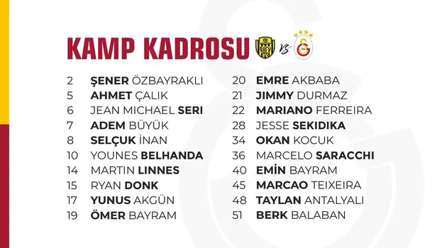 Galatasaray'ın Ankaragücü müsabakası kamp kadrosunda şu oyuncular yer alıyor: