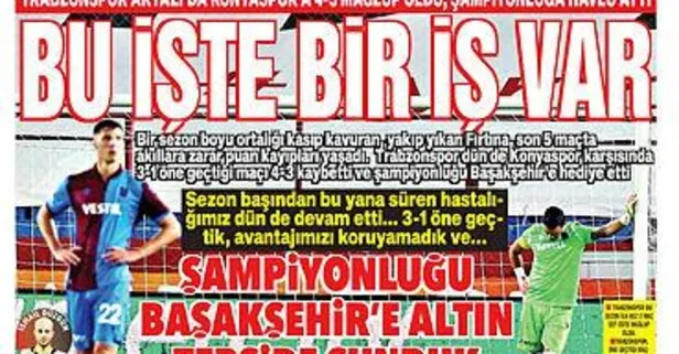 Trabzon yerel medyası, Konyaspor yenilgisi sonrasında dikkat çekici manşetler attı. Kuzey Ekspres gazetesi, “O sene gelecek sene!” derken Karedeniz gazetesi, “Bu işte bir iş var”, “Şampiyonluğu Başakşehir’e altın tepside sunduk. Emeği geçen herkese teşekkürler!” ifadelerini kullandı.