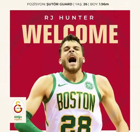 Açıklamada, geçtiğimiz sezon Türk Telekom'da forma giyen 1993 doğumlu oyuncu için, "Yeni transferimiz R.J. Hunter'a sarı kırmızılı formaya hoş geldin der, başarılarla dolu bir sezon geçirmesini temenni ederiz." ifadeleri kullanıldı.
