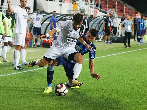 102. dakikada Adana Demirspor'da, Dibba'nın topu kaybetmesinden sonra topla buluşan Berk Yıldız ceza sahası sol çaprazdan sert vurdu, top çok az farkla dışarı çıktı.