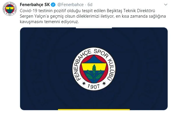 Sergen Yalçın'ın koronavirüse yakalandığının açıklanmasının ardından Fenerbahçe'den geçmiş olsun mesajı geldi. Fenerbahçe'den yapılan açıklamada şu ifadelere yer verildi:
